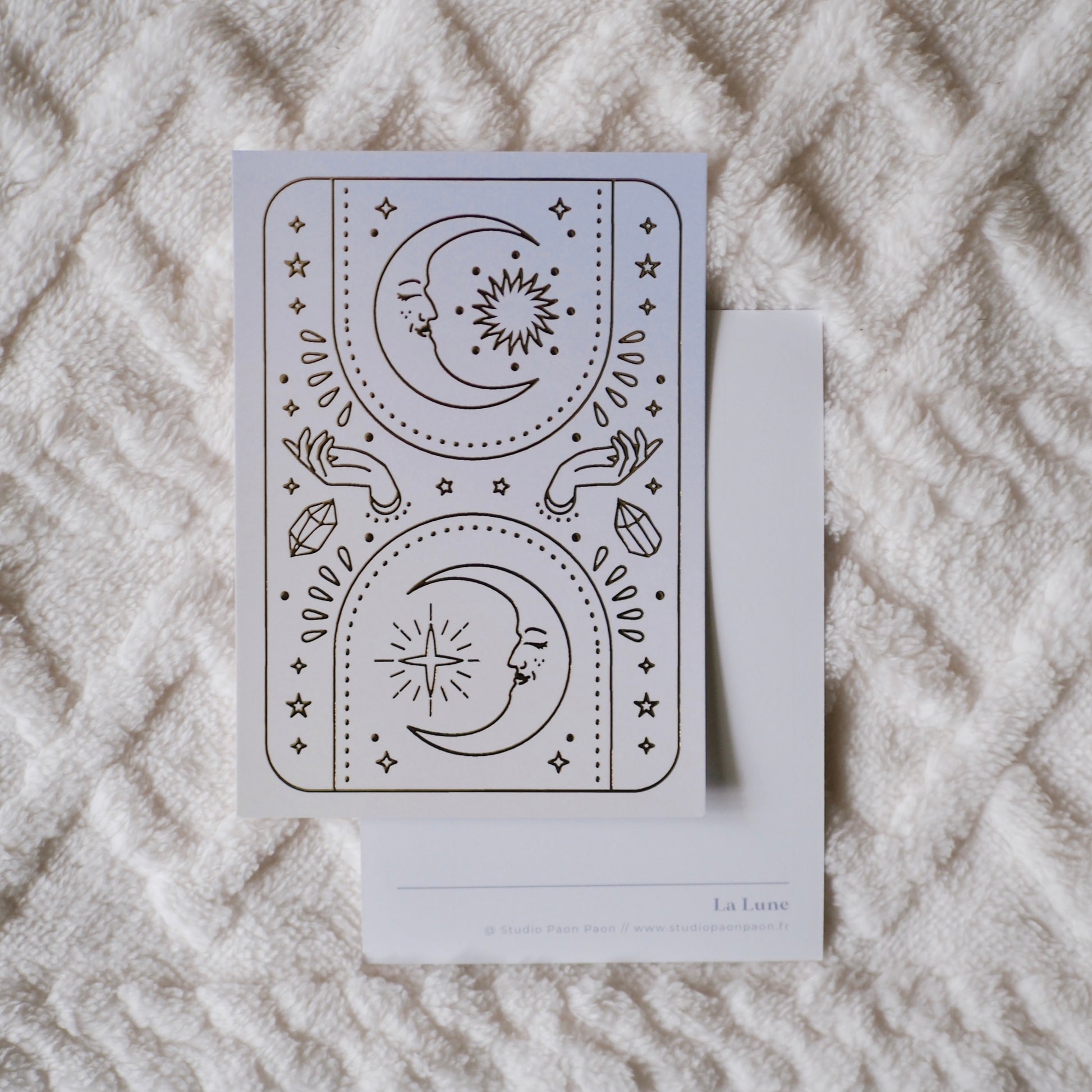 Carte postale esprit tarot / oracle avec dorure 10,5 x 14,8 cm • « La Lune »