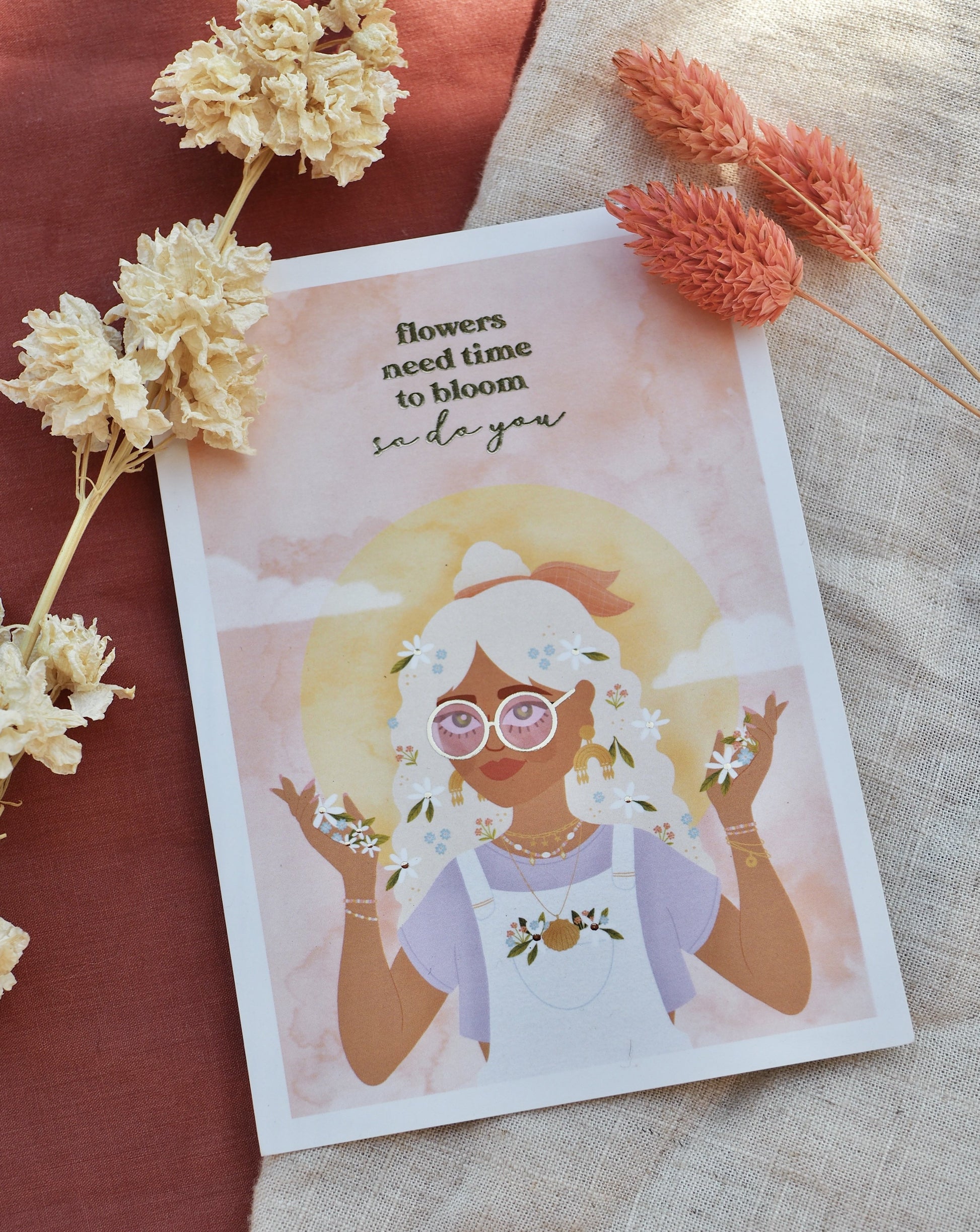 Carte Postale 10,5 x 14,8 cm avec dorure à chaud • Illustration "Time to Bloom"
