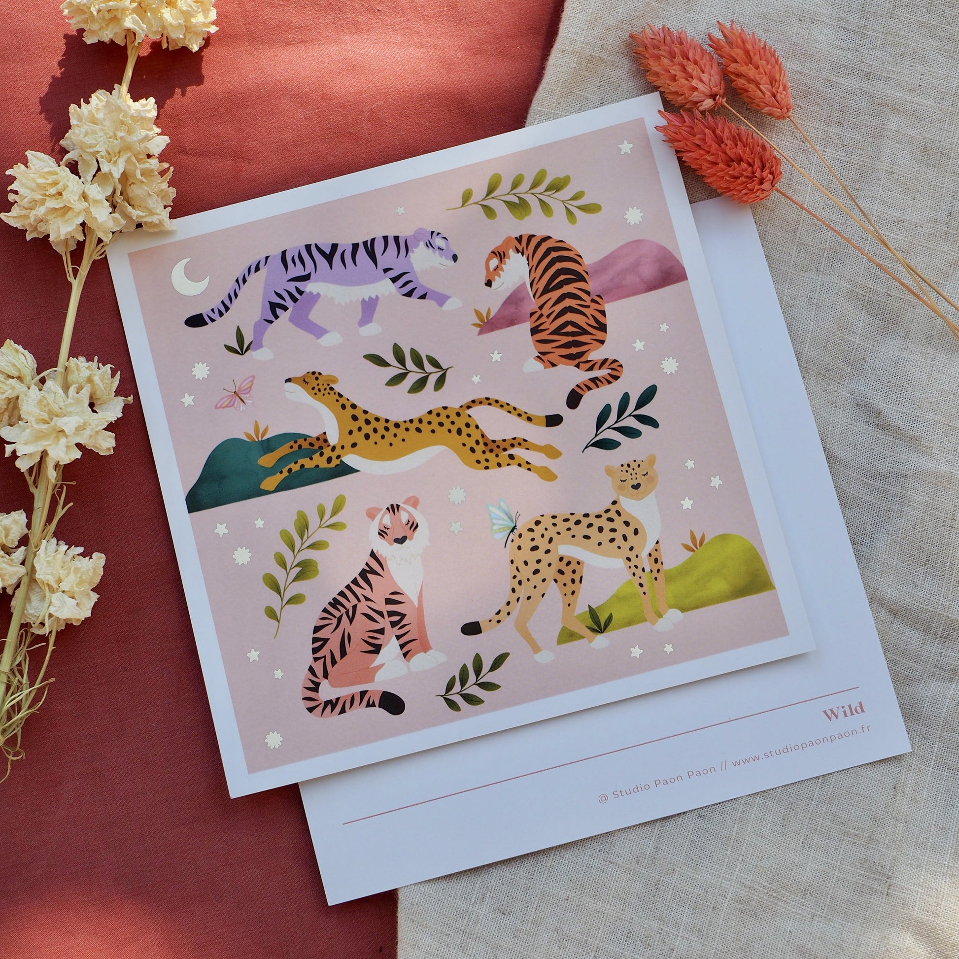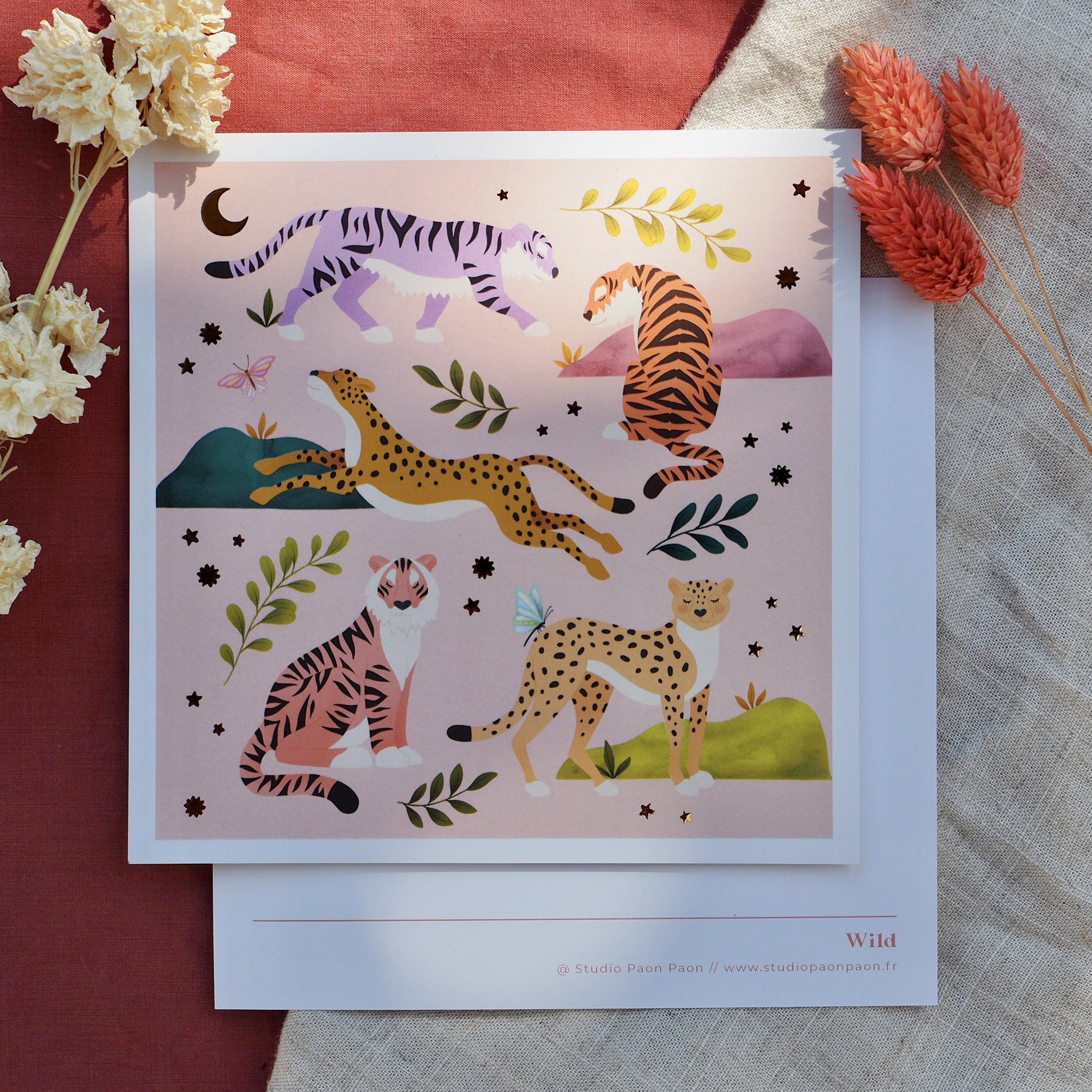 Carte Postale 14,8 x 14,8 cm avec dorure à chaud • Illustration "Wild"