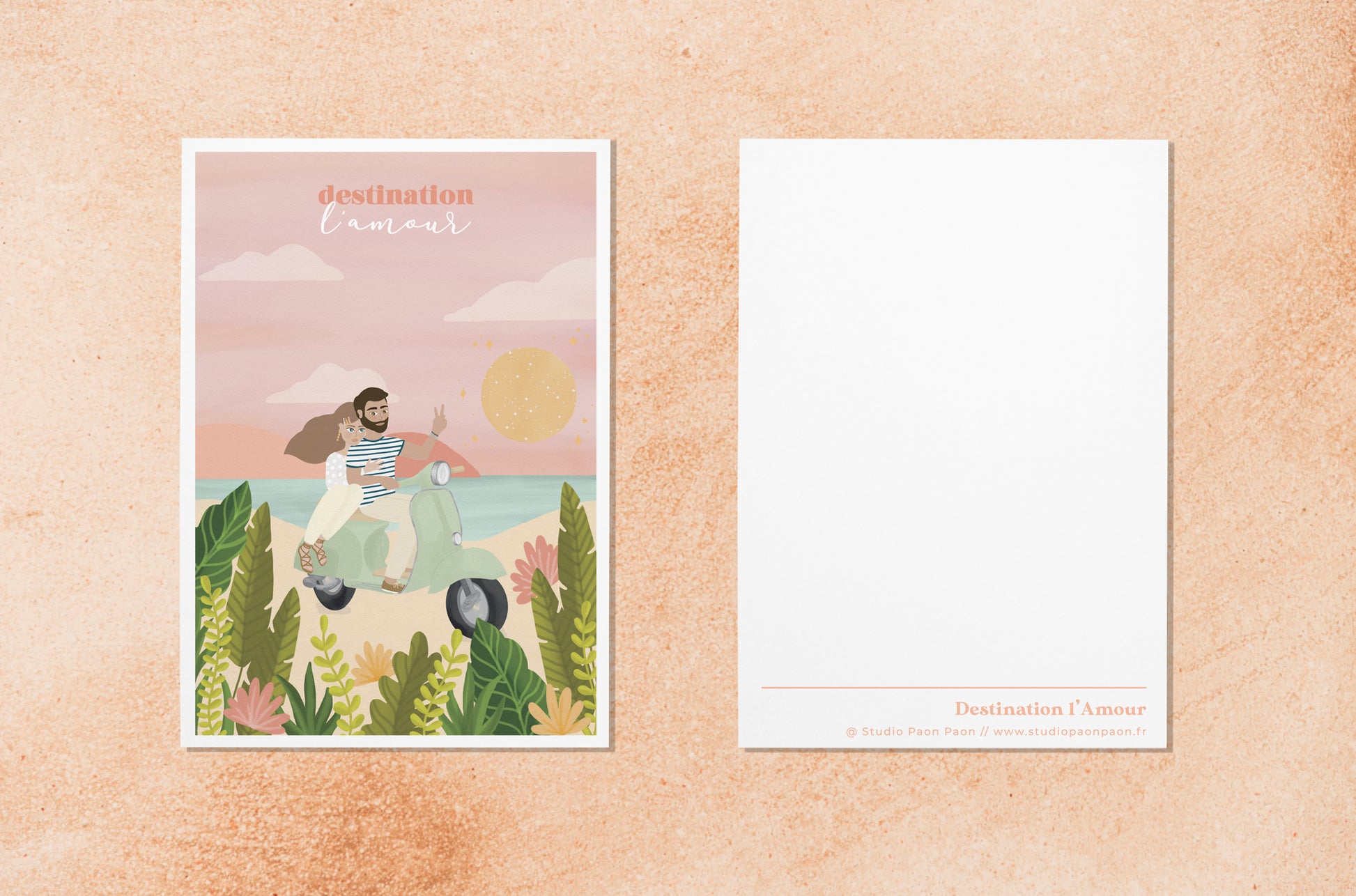 Carte Postale 10,5 x 14,8 cm • Illustration "Destination l'Amour"