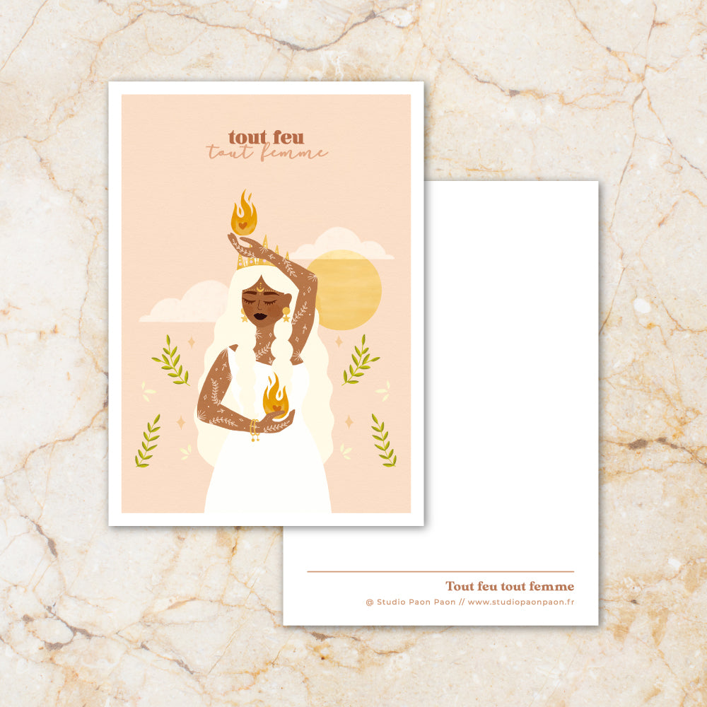Carte Postale 10,5 x 14,8 cm • Illustration "Tout feu tout femme"