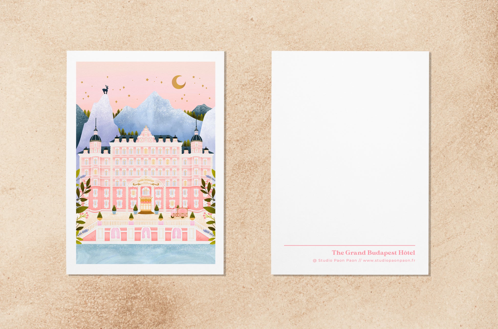 Lot de 3 cartes poctales 10,5 x 14,8 cm avec dorure à chaud « The Grand Budapest Collection » (1 carte de chaque visuel)