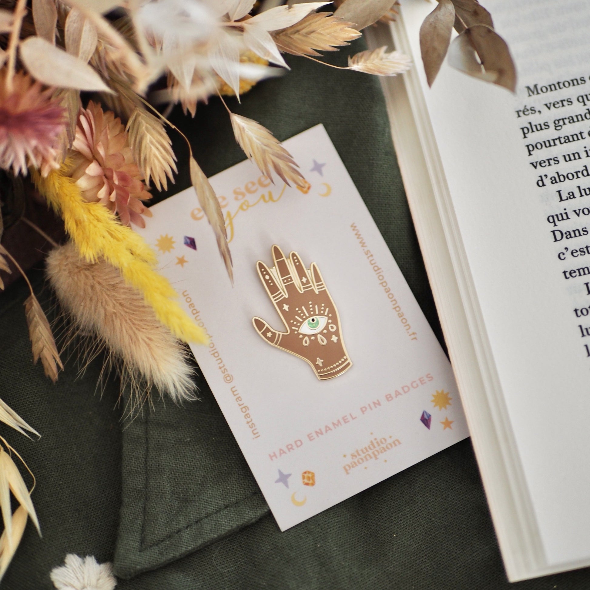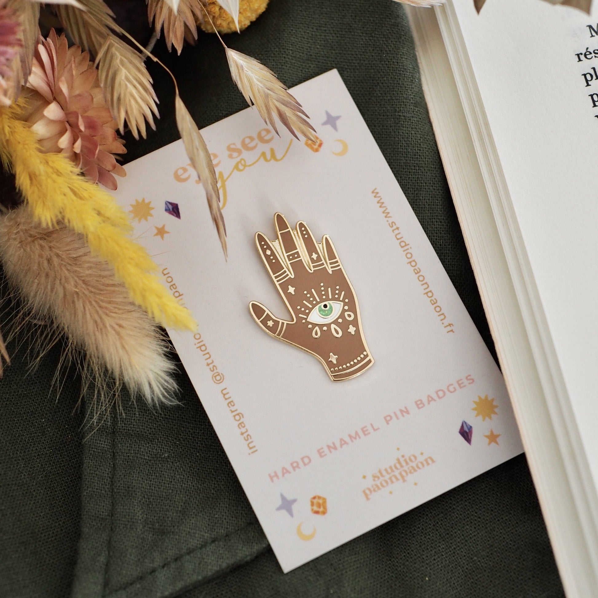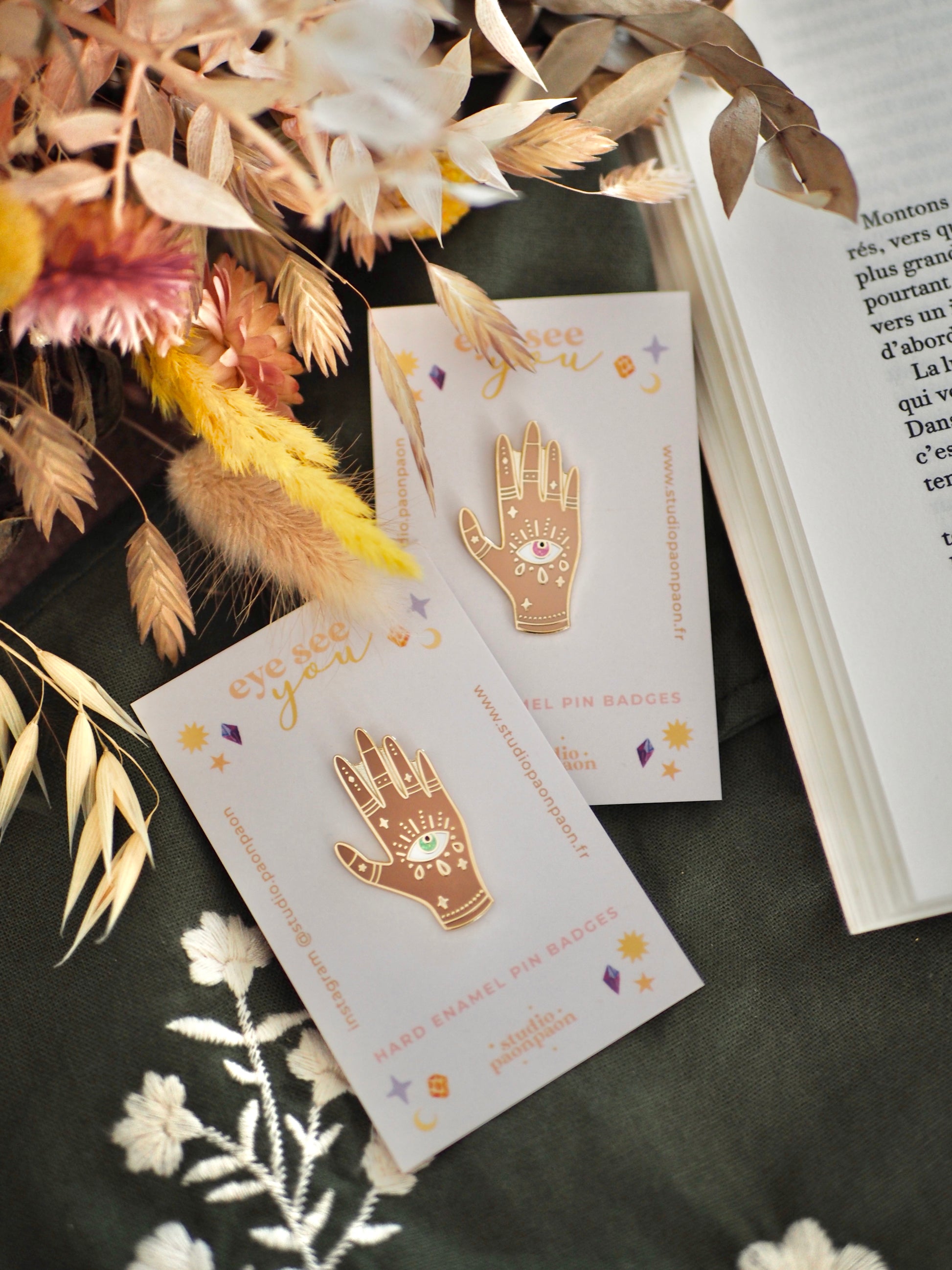 Vos pins sont tous accrochés à une petite carte de support imprimée, et protégés dans un emballage en papier crystal.